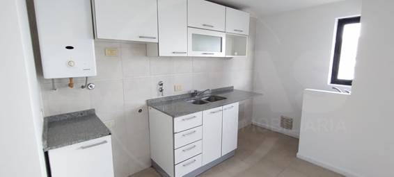 Al ingresar, se encuentra un amplio y luminoso living-comedor con aire acondicionado, integrado a la cocina, la cual cuenta con amoblamiento completo (alacenas y bajo mesada) y lavadero incorporado, optimizando el espacio.