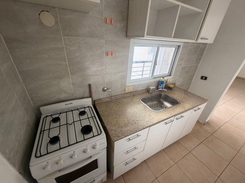 LIVING COMEDOR CON ESTUFA Y CORTINAS BLACK OUT, COCINA (ALACENA, MESADA, BAJO MESADA Y COCINA) , BALCÓN CONTRAFRENTE CON CALEFON Y 1 DORM CON PLACARD Y CORTINAS BLACK OUT.-